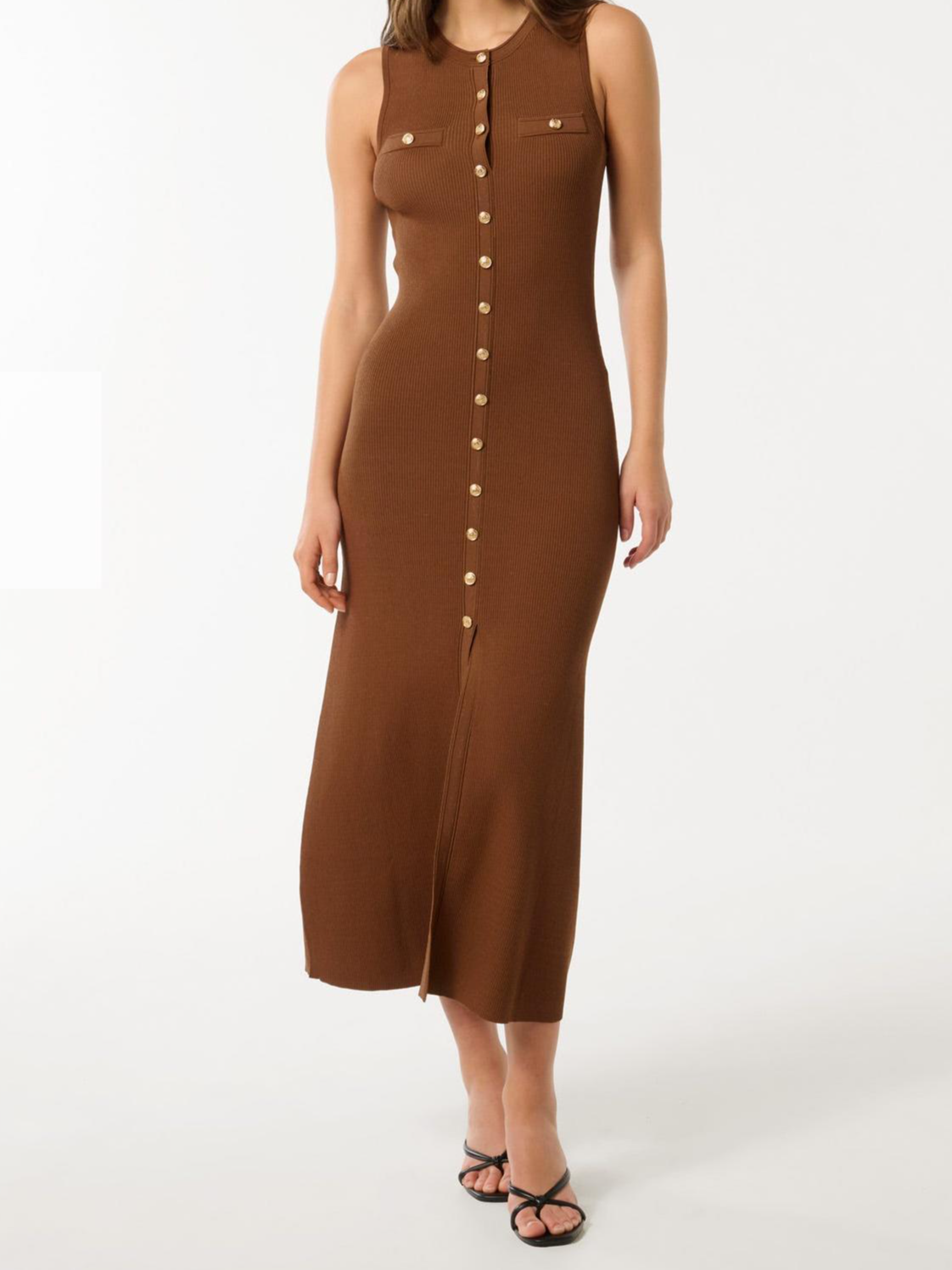 Khaki Button-Through Knit Dress 231944